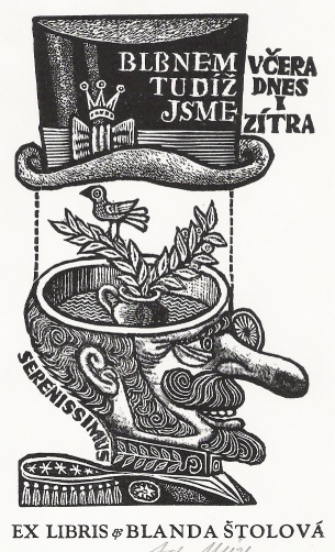 Nyní dojde na autory jejichž tvorba je vážná, poetická, filosofická či experimentální, ale i tam občas narazím na grafiku – „napadnutou“ s nádherným nápadem, či nadsázkou, že mne výsostně pobaví. A o takové se s vámi chci podělit. Trochu omezení jsem si dal tím, že jsem se omezil na exlibris, protože tato „dílka“ se většinou vyskytnou spíše na novoročenkách. Dále jsou v této kapitole uvedeni i autoři, kteří jen ojediněle zabrousili do oblasti exlibris. Vydatným pomocníkem při hledání takových exlibris a autorů mi byly opět každoroční výstavy „Žeň českých a slovenských exlibris“ na Farmaceutické fakultě v Hradci Králové.