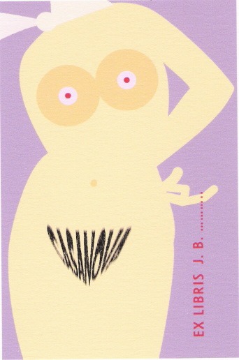 Mohou však přibýt opusy výtvarníka Bohuslava Šíra (1956), jehož exlibris vytvořená počítačem mne zaujala na XI. trienále v Chrudimi v roce 2005. Ex libris J.B. je zjednodušený ženský akt, jehož klín namísto kučeravých chloupků tvoří nápis Casanova (CAD, xx:xx). Hravá nadsázka skvěle pobaví naše oko.
